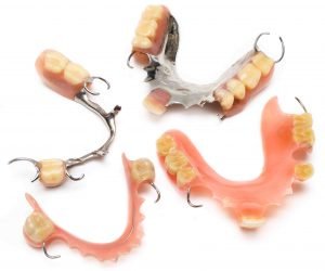 Partial Denture – A partial denture rests on a acrylic or metal framework that attaches to your natural teeth. Sometimes crowns are placed on some of your natural teeth and serve as anchors for the denture. Partial dentures offer a removable alternative to bridges.